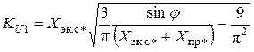 - индуктивное сопротивление цепи преобразователя, приведенное к S пр, т.е. от точки возникновения коммутационных коротких замыканий до точки, в которой определяется КU, о.е.