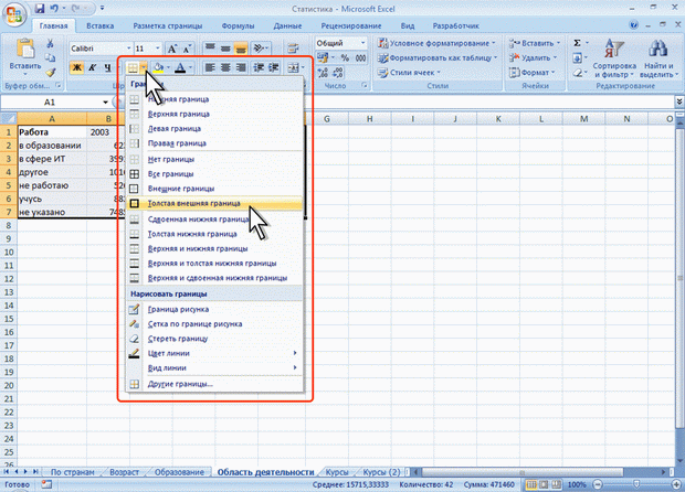 В Excel 2007 удобнее, чем в предыдущих версиях организована работа со строкой формул.