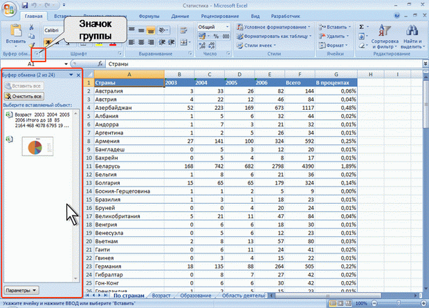 А значок группы Буфер обмена отображает область задач Буфер обмена (рис. 1.15).