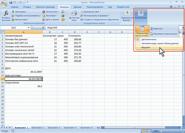 Рис. 6.18. Изменение режима вычислений