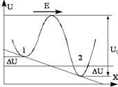 Приложение электрического поля приводит к тому, что ионы, движущиеся в направление оси Х, получают дополнительное количество энергии DU (рис.), а это приводит к тому, что вероятность перехода из 1 в 2 становится больше перехода из 2 в 1, т.е. П1-2>П2-1.
