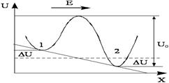 После наложения электрического поля для диполей ориентирующихся по направлению поля величина потенциального барьера уменьшилась на DU. Для диполей ориентированных в противоположном направлении величина потенциального барьера увеличилась на DU, где DU – величина энергии электрического поля.