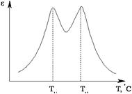 2. Нелинейная зависимость e от температуры и наличие точки Кюри.