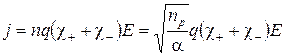 При малой напряженности электрического поля (участок 1) поле практически не нарушает равновесие между процессами ионизации и рекомбинации ионов. Поэтому количество рекомбинируемых ионов постоянно, подвижность также постоянна и соответственно: