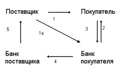Несколько обратную схему представляют собой расчеты платежными требованиями-поручениями, которые представляют собой расчетный документ, содержащий требование продавца к покупателю оплатить на основании направленных ему, минуя банк, расчетных и отгрузочных документов стоимость поставленного по договору товара. Плательщик, определив возможность оплаты полученного платежного требования-поручения, сдает данный документ в обслуживающий его банк для перечисления акцептованной им суммы на расчетный счет продавца. Расчет платежными требованиями-поручениями совершается по следующей схеме: