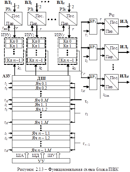 Число секций ИЗУ соответствует числу N входящих линий. Каждая ВЛ имеет свой регистр записи для последовательно-параллельного преобразования кодовых слов.