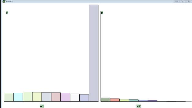 Рисунок 20. График распределения величин g и h при w1=10 и w2=4.