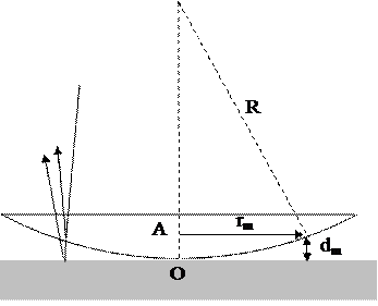 Как связаны геометрические размеры установки и радиусы интер. колец? При перпендикулярном падении света оптическая разность хода лучей 1 и 2 равна