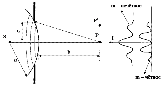 Пусть на пути сферической волны находится экран с круглым отверстием радиуса