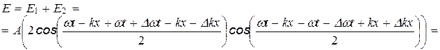 Рассмотрим суперпозицию двух волн, близких по частоте, одна волна имеет частоту