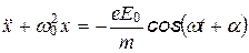 Вторым слагаемым мы можем пренебречь по сравнению с первым. Тогда на электрон со стороны электромагнитного поля будет действовать переменная сила с частотой электромагнитной волны.