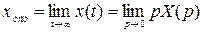 Необходимые расчётные соотношения для вычисления установившихся ошибок САУ могут быть определены при помощи теоремы операционного исчисления о предельном значении функции. Эта теорема утверждает, что если