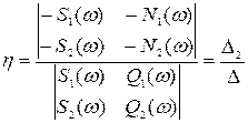 D=S1(w)Q2(w)-S2(w)Q1(w).