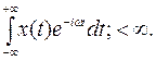 Интеграл Фурье (прямое преобразование Фурье) позволяет разложить непериодическую функцию x(t), обладающую свойством абсолютной интегрируемости в заданных пределах, в бесконечный ряд гармоник, образующих непрерывный спектр частот в интервале от - ∞ до +∞ с бесконечно малым интервалом частот между смежными гармониками (т.е. в пределе ∆→0).