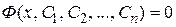 . Для составления соответствующего ему дифференциального уравнения необходимо найти столько производных данного решения, сколько произвольных постоянных оно содержит. Тогда получится система, состоящая из (n +1)-го уравнения с n произвольными постоянными