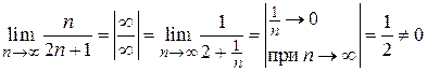 Следствие. Если предел общего члена ряда при неограниченном возрастании его номера отличен от нуля, т. е.