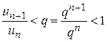 . Если r < 1, то всегда найдется число q, удовлетворяющее неравенству r < q < 1. В этом случае по определению предела существует такое число N, что если номер члена ряда n > N, то отношение