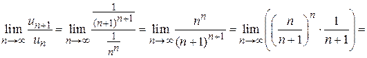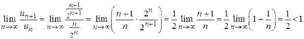 существует предел отношения последующего члена ряда к предыдущему при неограниченном возрастании их номеров, т. е. существует предел
