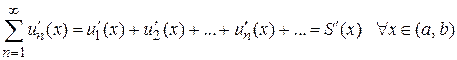 , то его можно почленно дифференцировать; причем ряд составленный из производных его членов равномерно сходится к производной суммы ряда, т. е.