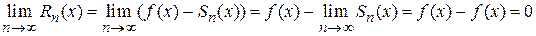 , для которой он составлен, необходимо и достаточно, чтобы остаточный член ряда стремился к нулю при неограниченном увеличении его номера n, т. е.