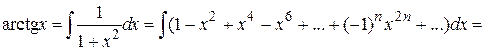 На основании теоремы Вейерштрасса о равномерной сходимости любой степенной ряд в интервале сходимости является равномерно сходящимся. Поэтому ряд составленный из интегралов членов такого ряда сходится к интегралу от суммы этого ряда. Используем это свойство для получения разложений в степенной ряд функций: