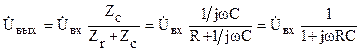 Для расчета частотной характеристики схемы воспользуемся методом комплексных амплитуд. По схеме рис.2.3,б, используя формулу для делителя напряжения, найдем выходной сигнал