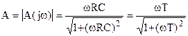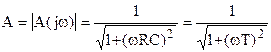 . Это означает, что на частоте ωс = 1/RC, коэффициент передачи уменьшился в
