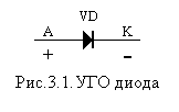 Полупроводниковый диод – полупроводниковый прибор с одним электрическим p-n – переходом и двумя выводами. Условное графическое изображение (УГО) диода показано на рис.3.1.