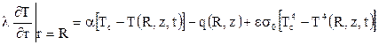 - коэффициент теплообмена с окружающей средой конвекцией и зависит от геометрических размеров и формы стенки нагреваемого изделия; q – тепловой поток от корпуса взрывателя к корпусу посадочного гнезда.