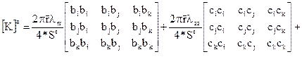В осесимметричной задаче, как и в плоской, матрица жесткости конечного элемента имеет вид