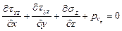 – компоненты вектора массовых сил. Три других уравнения равновесия в виде сумм моментов внутренних сил относительно координатных осей приводят к известным условиям парности касательных напряжений