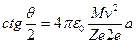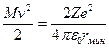 где M и v – масса и скорость альфа-частицы; 2 e – ее заряд; ε0 – электрическая постоянная, равная 8,85.10-12 Ф/м.