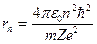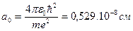 Расчет по этим формулам при n=1 и Z=1 дает радиус наименьшей стационарной орбиты электрона в атоме водорода или первый боровский радиус: