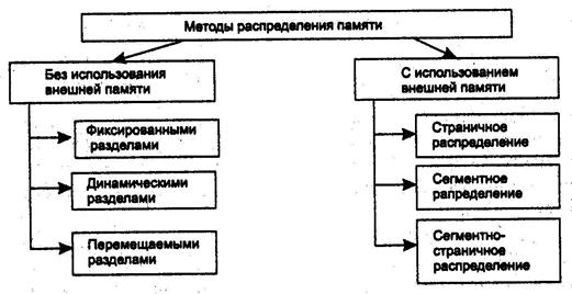 Все алгоритмы распределения памяти разделены на 2 класса – это алгоритмы, в которых используется перемещение сегментов процессов между оперативной памятью и диском и алгоритмы, в которых внешняя память не используется.
