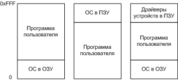 Третий вариант используется в MS-DOS. Та часть, которая находится в ПЗУ, часто называется BIOS.