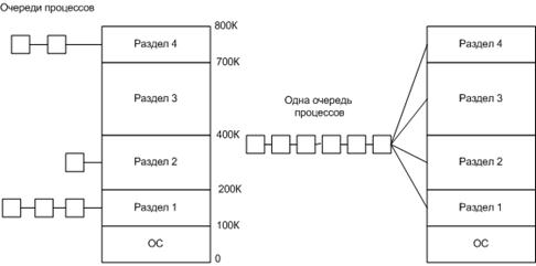 Память разбивается на несколько областей фиксированной величины (разделы). Такое разбиение может быть выполнено либо при загрузке системы, либо при ее установке. Процессы могут быть разными, поэтому каждому разделу необходим разный размер памяти.