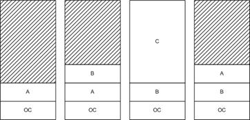 Так как, процесс С очень большой, процесс А был выгружен временно на диск, после завершения процесса С он снова был загружен в память.