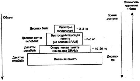 Для ускорения доступа к данным широко используется принцип кэширования. В компьютерах существует иерархия запоминающих устройств, в которой каждый уровень памяти (кроме нижнего) выполняет роль кэша по отношению к нижележащему.