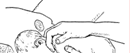 3 пальцами идем в область надплечья, переходим на плечо и давлением на локтевой сгиб извлекаем нижнюю ручку. Затем поворачиваем туловище на 90є, спинкой к лону,