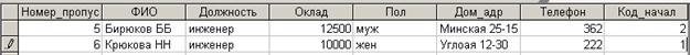 Допустим, что в таблицу Сотрудники (в результирующую таблицу) требуется добавить сведения о Бирюкове ББ.