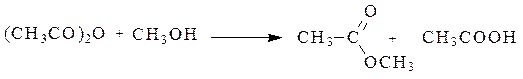Ангидриды карбоновых кислот несколько менее реакционно способны в реакциях ацилирования вследствие меньшего положительного заряда на атомах углерода карбонильных групп. Меньший положительный заряд в сравнении с галогенангидридами возникает из-за того, что атом кислорода проявляет отрицательный индуктивный эффект по отношению к обеим карбонильным группам. При ацилировании спиртов ангидридами кислот, как и при ацилировании с помощью галогенангидридов, выделяющуюся кислоту связывают добавлением органических оснований.