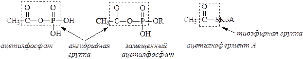 В биологических объектах в качестве ацилирующих агентов выступают тиоэфиры и смешанные ангидриды кислот. Ацетилфосфат и родственные ему соединения образуются при расщеплении АТФ под действием карбоксилат-ионов. Ацетилкофермент А образуется в результате ферментативного расщепления замещенных ацетилфосфатов под действием кофермента А.