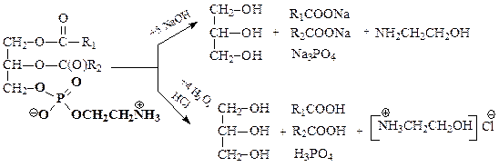 Как сложные эфиры, фосфолипиды подвергаются гидролизу в кислой или щелочной средах: