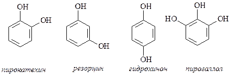 Многоатомные фенолы – пирокатехин, резорцин, гидрохинон, пирогаллол входят в состав многих природных соединений. Эти соединения широко используются для получения лекарственных препаратов, взрывчатых веществ, красителей, как аналитические реагенты, как восстановители в фотографии.