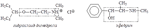 Димедрол используется в качестве противоаллергического препарата, обладает слабым снотворным действием. Эфедрин используется как сосудорасширяющее средство.