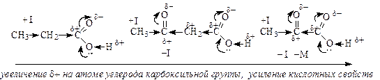 Оксо-группа, содержащаяся в оксокислотах, являясь электроноакцепторным заместителем, усиливает их кислотные свойства за счет проявления отрицательных индуктивного и мезомерного (при наличии сопряженной системы) эффектов: