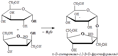 Сахароза (тростниковый или свекловичный сахар) – дисахарид, состоящий из остатков a-D-глюкопиранозы и b-D-фруктопиранозы, связанных посредством a-1,2-гликозидной связи: