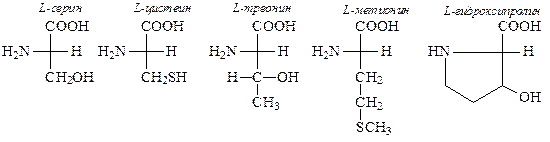 Аминокислоты – производные карбоновых кислот, в молекулах которых один или несколько атомов водорода в углеводородном радикале замещены на одну или несколько аминогрупп. Наибольшее биологическое значение имеют a-аминокислоты, как структурные единицы белков и пептидов, b-,g- и d-аминокислоты играют гораздо меньшую роль. Большинство встречающихся в природе аминокислот имеют структуру типа R-CH(NH2)-COOH и отличаются только строением радикала R. В белках чаще всего встречается около 22 аминокислот. Для поддержания жизнедеятельности человека определенные аминокислоты должны ежедневно поступать с пищей, так как организм не синтезирует или не способен их синтезировать в достаточном количестве. Такие аминокислоты называются незаменимыми. Все аминокислоты, кроме простейшего представителя – глицина, содержат хиральный центр у a-углеродного атома. Большинство природных аминокислот принадлежит к L-ряду стереохимической номенклатуры.