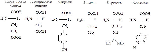 3) содержащие боковые цепи с кислотной или основной функцией: