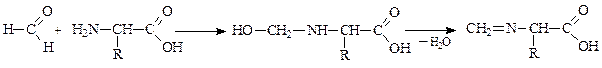 Аминокислоты реагируют с альдегидами, образуя аминоспирты, которые легко могут быть превращены в имины (основания Шиффа). Реакция аминокислот с формальдегидом приводит к образованию аминоспиртов, которые можно оттитровывать, используя метод кислотно-основного титрования. Непосредственное титрование аминокислот щелочью не может быть использовано для их количественного определения вследствие амфотерности аминокислот: